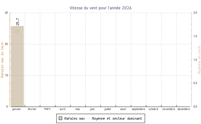| Total | -9.1 °C | -5.5 °C | 9.3 °C | 4.9 °C | -1.7 °C | 1.7 km/h | 25.7 km/h | SSO |
